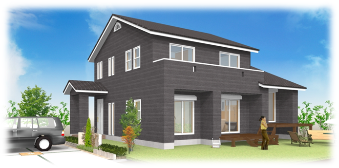 【HAGI日記】・・・未来写真 2010年04月23日 未来写真ではこんなことができます。実際のニチハのサイディングを使ったイメージパースです。緑色だとこんな感じ。青色はこんな感じ。窓の周りにモールを付けるとこんな感じ。夢が膨らみますね!