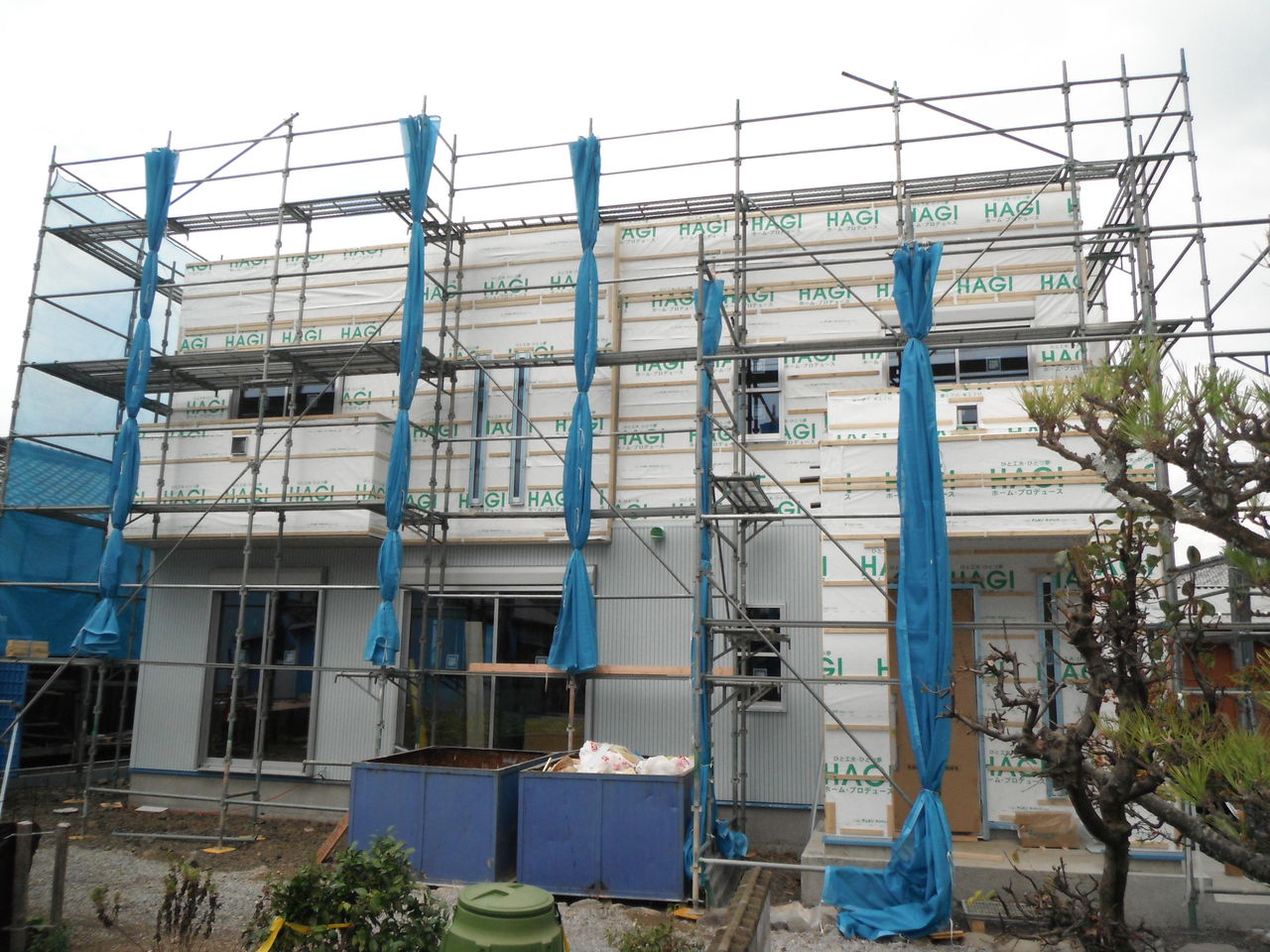 【只今施工中】・・・「色使いにこだわった四角い箱型の家」更新しました。 2011年11月13日 現在、外部はサイディング工事中です内部はプラスターボード工事中です!職人さん、ありがとうございます!HAGI やの